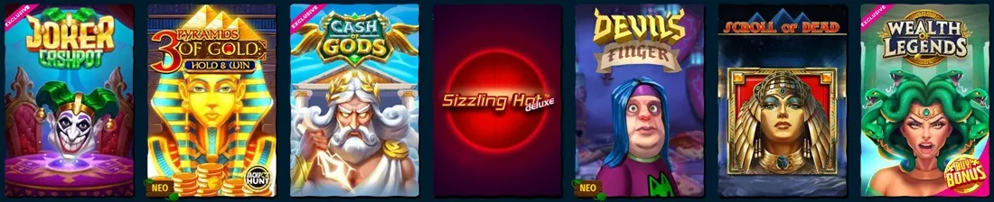Στην κατηγορία ‘Αποκλειστικά’, ξεχωρίζουν τα Bounty of the Seas, 100 Bracelets, Raiders of the North, και Tiger Bliss.